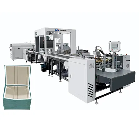 These difficulties are resolved by integrated automation in contemporary rigid box making machines and rigid box wrapping machines. Sophisticated systems ensure that every lid and base box meets precise specifications, from small jewelry cases measuring 100x50x12mm to gift collections measuring 600x400x130mm. These systems handle adhesive application, cover material wrapping, and corner folding within ±0.2mm tolerances.